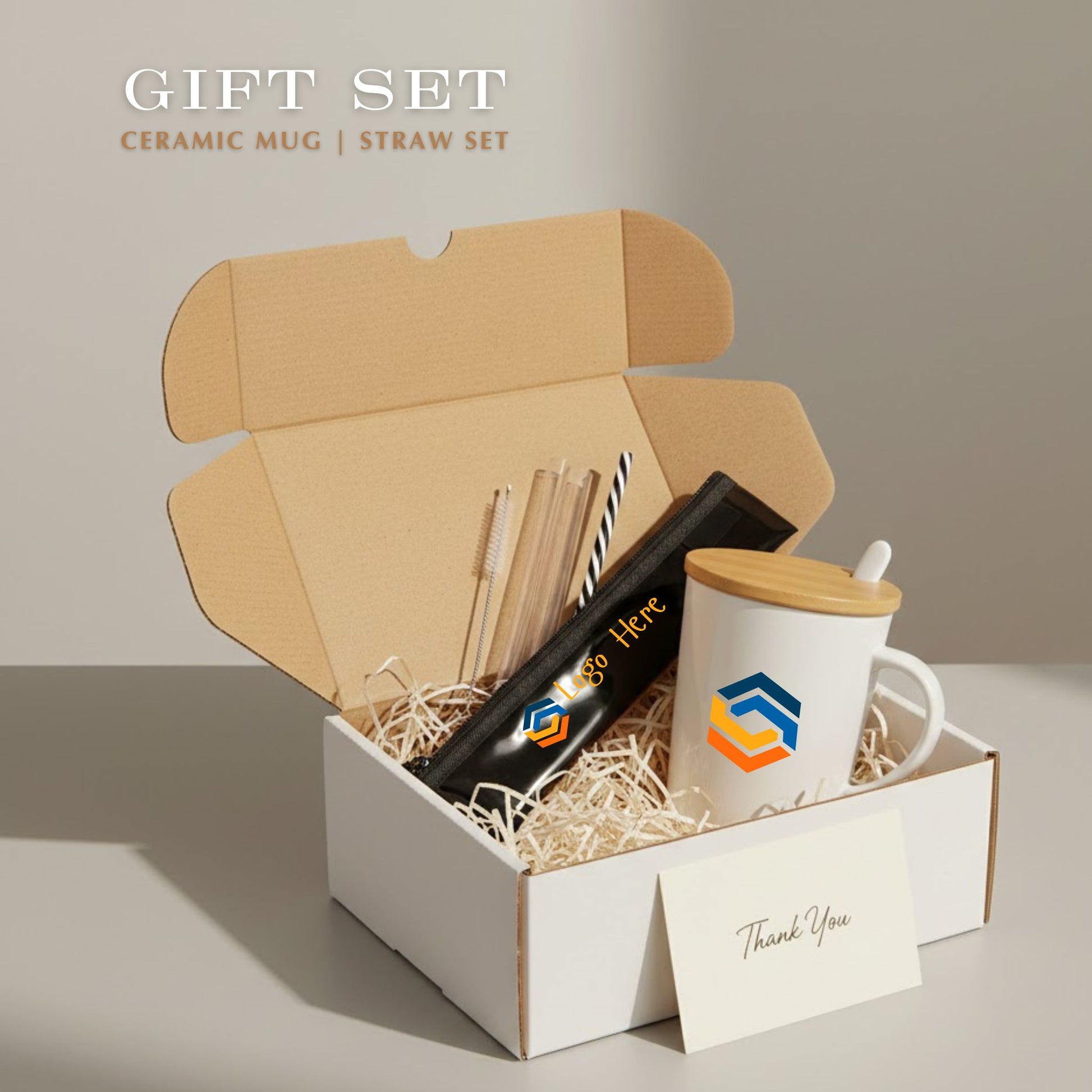 Corporate Gift Set C16 | Ceramic Mug & Straw with Custom Logo